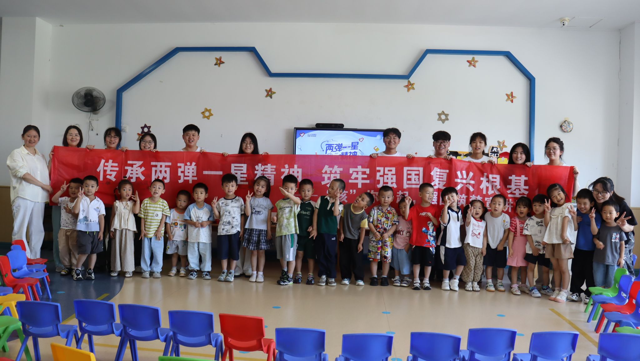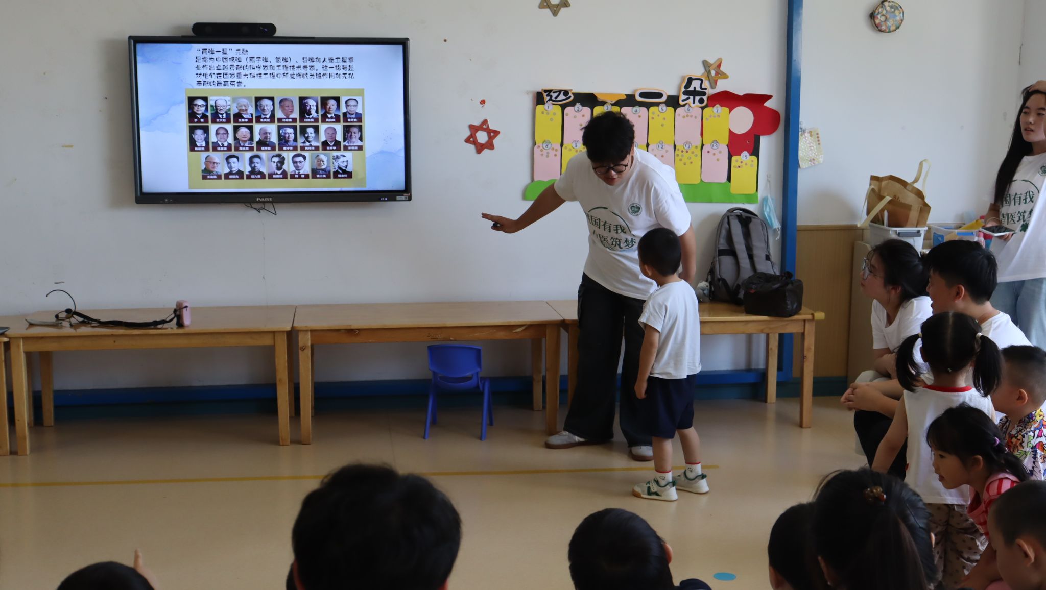立体宣讲多维度科普,点燃心灵共鸣。怀宁县作为“两弹元勋”邓稼先的故乡,具有浓厚的文化底蕴。在高河镇七彩星球和心连心幼儿园,团队成员结合搜集到的素材以及实地参观的真实感悟,开展“两弹一星”精神系列宣讲。在宣讲的过程中,当团队成员王文君讲述“两弹元勋”邓稼先事迹时,向小朋友们问道:你们知道“两弹元勋”邓稼先爷爷的家乡在哪里吗?话音刚落,二十多只小手臂高高举起,清脆童声响彻教室:“是怀宁人!”旁边的小朋友立即起身,小手紧握成拳,掷地有声地高喊:怀宁人帮助中国人!顿时全场掌声雷动。这来自童年的时代回响,恰似对建党104周年最纯粹的献礼!