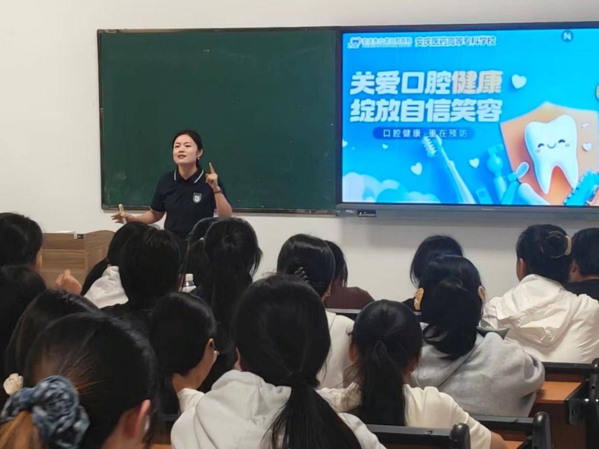 为强化大学生口腔健康管理意识,推动口腔医学知识的普及,护理学院携手安庆朱小龙口腔医院,开展2025校园口腔健康公益活动。10月15日在护理实训楼阶梯教室举办“关爱口腔健康·绽放自信笑容”宣讲,一百多名学生参与。