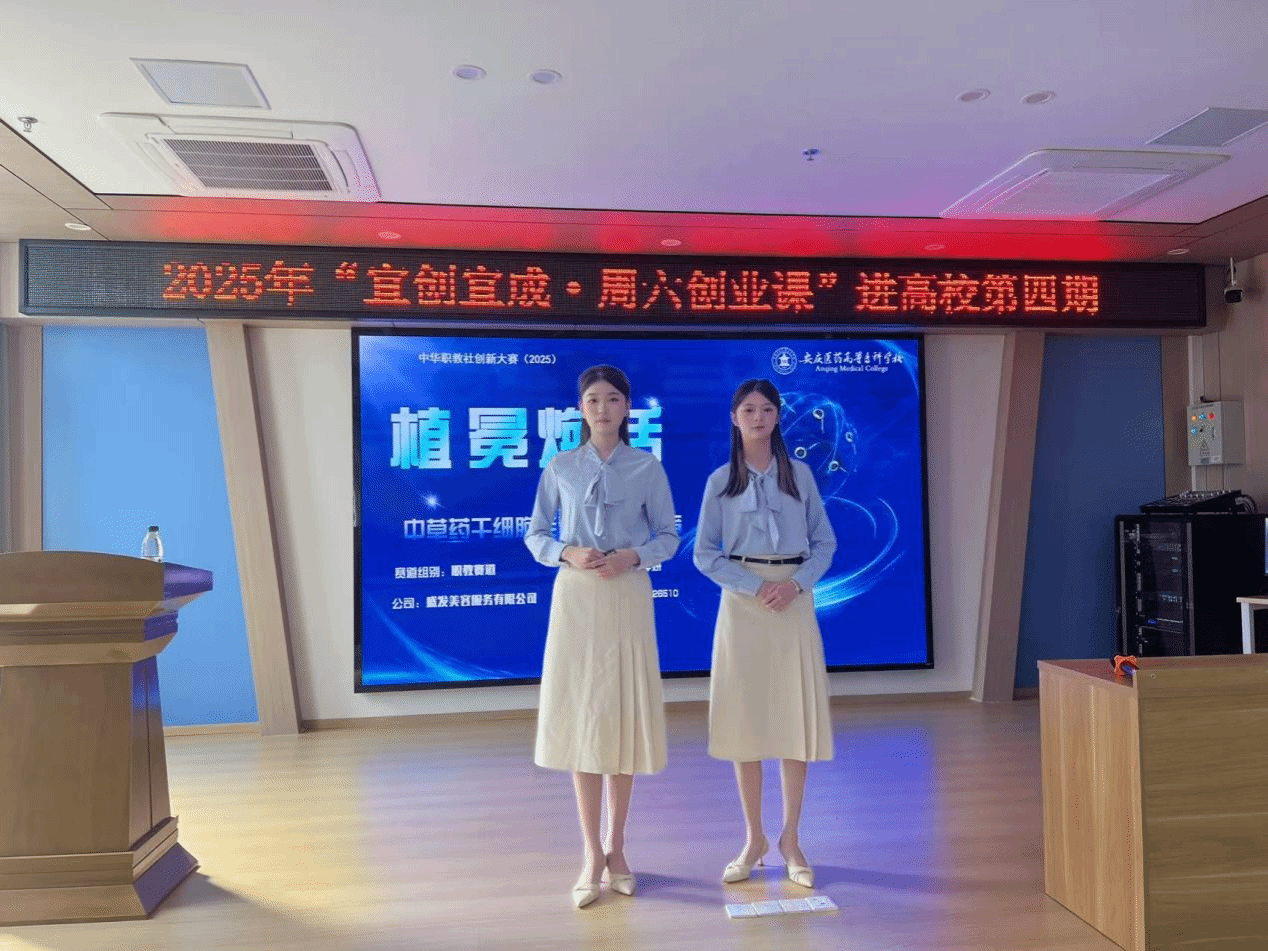 辅导环节结束后,我校学生创业团队进行了题为《植冕焕活——中草药干细胞毛囊修复领航者》的项目成果展示。项目团队成员结合精心制作的 PPT,从项目背景、技术原理、产品优势、市场前景等方面展开介绍。该项目既贴合医药专业特色,又紧扣市场需求,展现出团队扎实的专业功底与敏锐的创业洞察力。