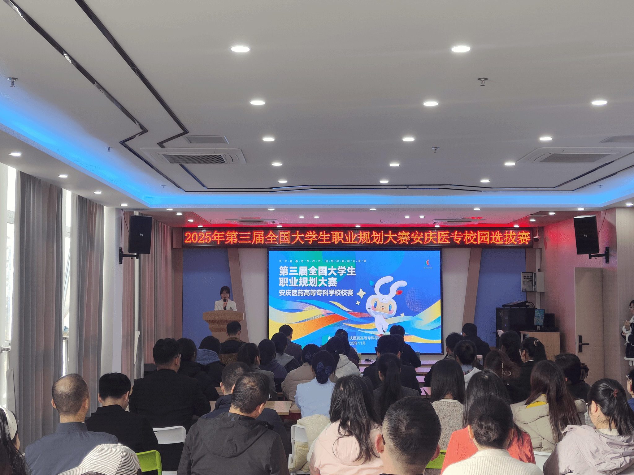 为加强生涯教育和就业指导,实现“以赛促学、以赛促教、以赛促就”,11月26日在校双创中心就业指导中心报告厅举行了我校第三届全国大学生职业规划大赛暨安徽省第十九届大学生职业规划大赛校园选拔赛。校党委委员、党政办主任陈琪、各二级学院党总支副书记、学生处相关负责同志以及来自各班级的100余名师生代表现场观摩了本次比赛。