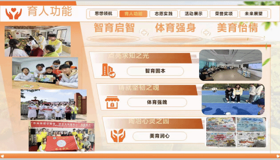 国防先锋学社注重引导学生厚植家国情怀,铸牢忠诚品格,锻炼吃苦耐劳意志品质,深耕思想引领领域。社团通过开展儿童国防宣教暑期“三下乡”社会实践、体验国防设施等活动将国防教育融入校园生活,获评思想引领类“活力社团”称号。