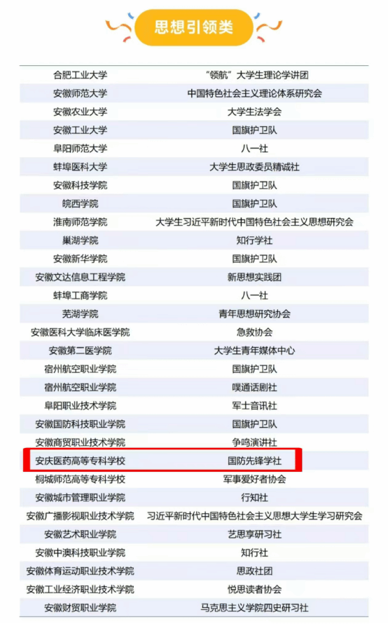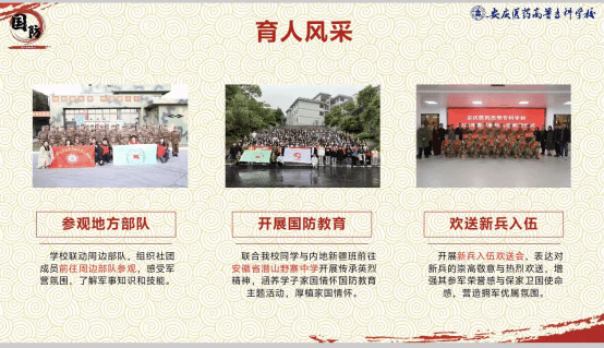 活动正式启动后,学校迅速将其纳入重点工作。校团委牵头进行统筹规划,在众多申报社团中严格把关、优中选优,经过校内评选、线上风采展示,最终确定国防先锋学社、宜韵艺术团、岐黄中药社、敬老学社4个优秀社团代表学校参与省级评审。学生处、药学院、护理学院作为社团业务指导单位高度重视,会同社团指导老师对社团答辩内容严格把关、精心指导,最终国防先锋学社、敬老学社凭借出色表现成功入选2024-2025学年安徽省高校联通杯“活力社团”。