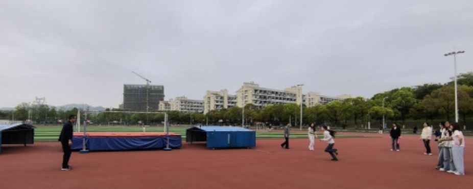 理论讲解结束后,郭章杰带领学生代表前往田径场跳高项目区域,开展实地规则讲解与实践指导。参与学生积极互动、认真练习,在郭老师的一对一指导下,运动技能与规则认知均得到有效提升。