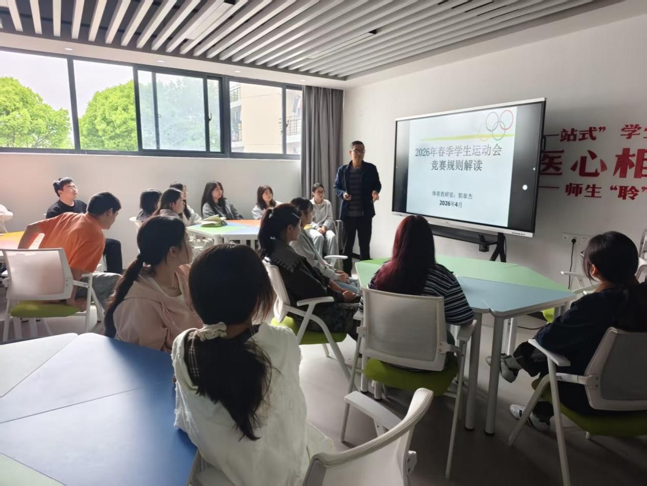 为深入落实《365beat版app大学生体质提升专项行动实施方案》,扎实推进体育健康资源融入“一站式”学生社区建设,牢固树立“健康第一”的教育理念,切实打通体育育人“最后一公里”,4月15日,公共基础学院体育党支部走进学生社区,面向学生代表开展2026年学生春季运动会竞赛规则专题讲解,并赴田径场跳高场地进行实地教学与规则指导,以专业服务贴近学生,以党建引领赋能体育锻炼。