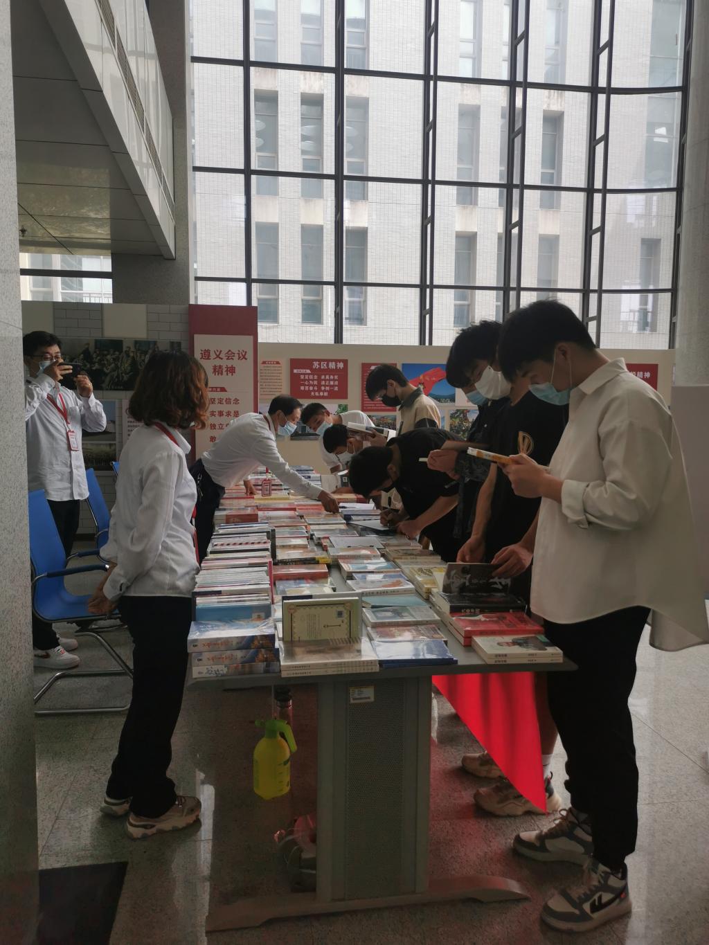 在喜迎二十大和第27个“世界读书日”到来之际,为了推广阅读,共建“书香校园”,4月26日,校图书馆联合安庆新华书店有限公司在图书馆二楼大厅举办了以“点燃读书热情 共建书香校园”为主题的“你荐书•我买单”读者荐购活动。副校长朱庆丰,教务处处长汪瑞,学生处副处长唐小丽参加了此次活动。