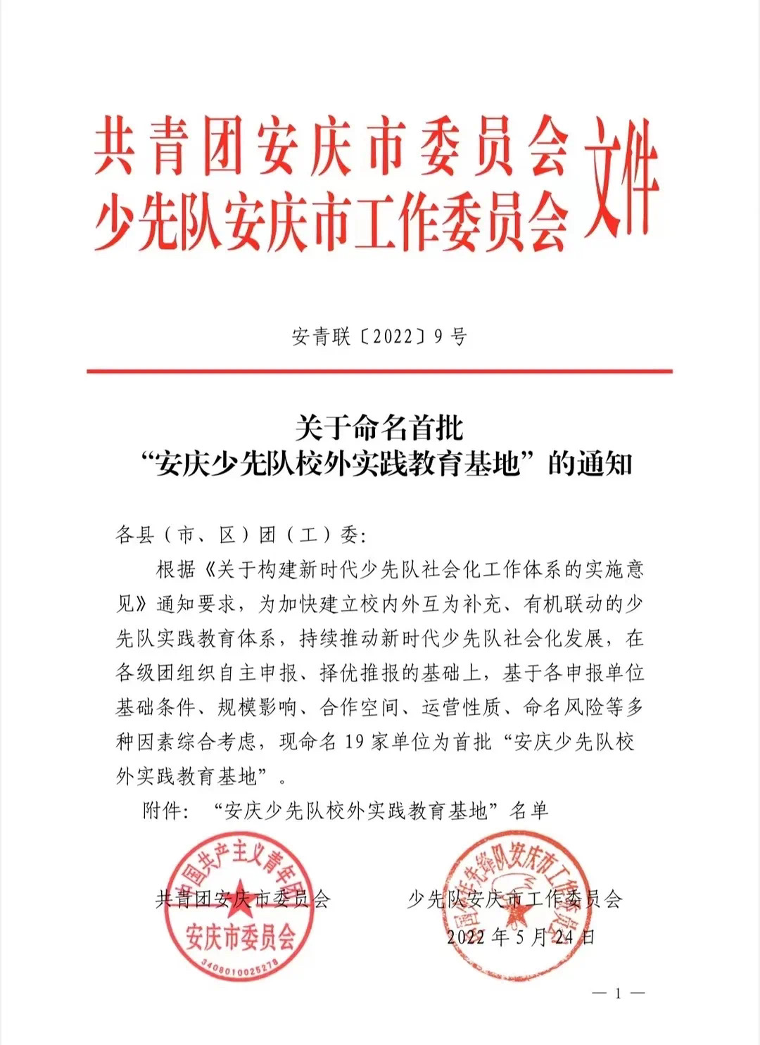 近期,共青团安庆市委、少先队安庆市工作委员会联合印发了《关于命名首批“安庆市少先队校外实践教育基地”的通知》,我校红十字应急救护培训基地被命名为首批19家“安庆少先队员校外实践教育基地”单位之一。