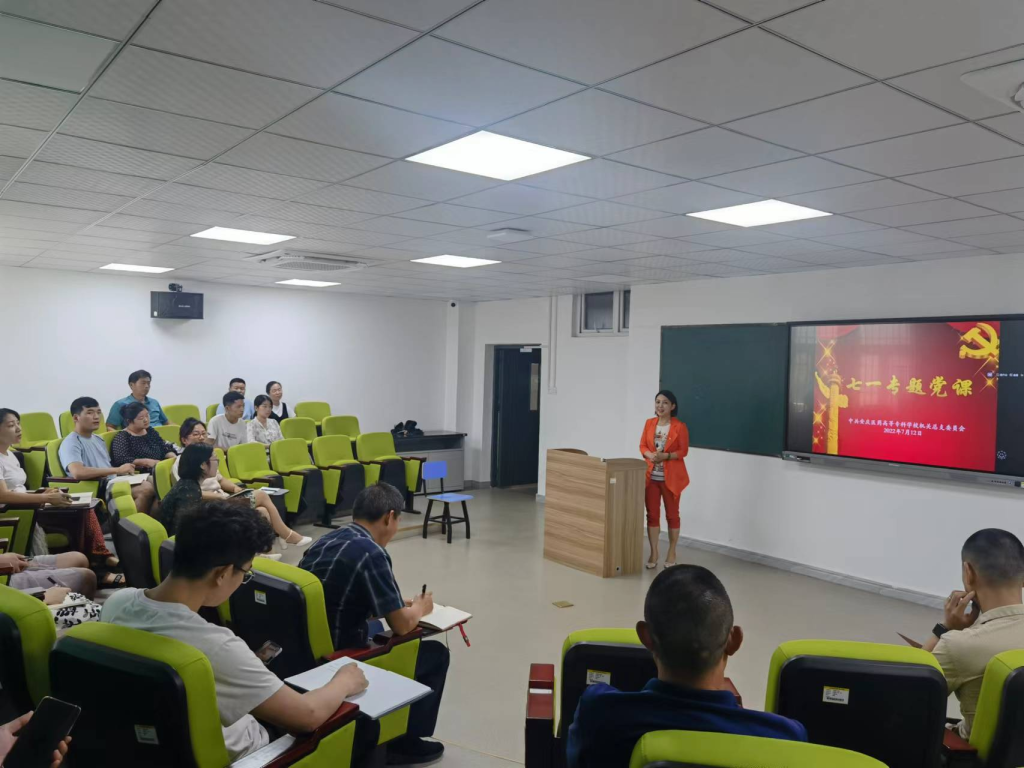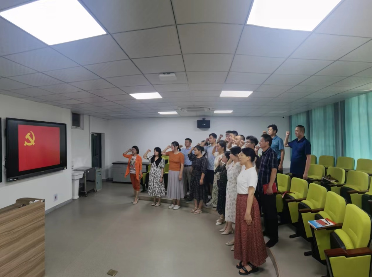 为迎接党的二十大召开,庆祝中国共产党建党101周年,充分发挥基层党组织战斗堡垒作用,激发广大党员干事创业激情,7月12日下午,机关党总支在护理实训楼开展“迎七一、讲党课、重温入党誓词”主题党日活动。