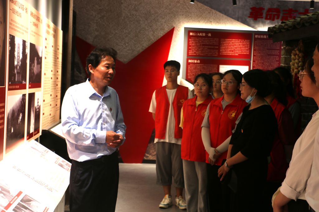 下午,师生一行来到地处大山深处的新棚皖南红军总医院纪念馆。在这里大家跟随讲解员共同回忆了1934年7月至1935年2月红军北上抗日先遣队在皖南地区的转战历程及新棚皖南红军总医院建立始末。战火中的医院和在浴血中奋战的勇士们,共同谱写了一部壮丽的革命篇章。鲜红的党旗下,大家庄重举起右手,再次重温入党誓词。