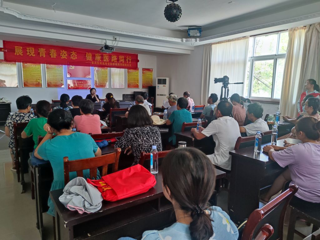 一走进村活动室,药学院师生一行便深深感受到新农村村民的热情。新农村不仅有着光荣的革命历史,也有着浓厚的红色文化。药学院学生代表首先就红色精神同与会村民共同交流和探讨。一个个感人的红色故事引起了革命老区村民的共鸣。随后,食品营养与检测教研室何玮老师就夏季食品健康注意事项开展讲座,同村民进行亲切交流,提醒各位留守老人,尤其要多关注儿童以及自身的夏季饮食健康问题。紧接着,学院向村民发放居家日常必备药品如感冒药、健胃消食药、防暑降温药等,并为村民测量血压,开展用药咨询、用药指导等服务。