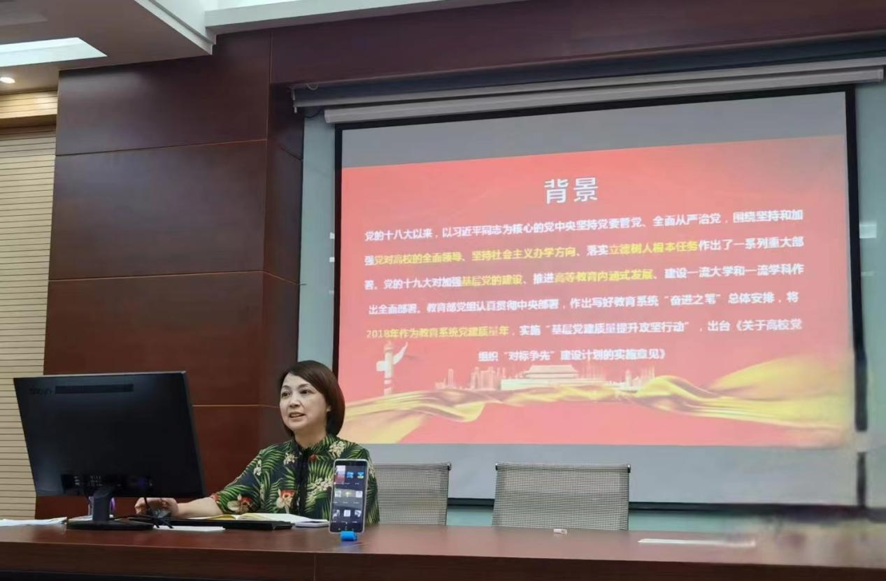 7月14日,校党委委员陈琪以“高校党组织‘对标争先’建设”为题为公共基础学院直属党支部全体党员上了一堂精彩纷呈的党课。陈琪从《关于高校党组织“对标争先”建设计划实施意见》基本情况、全国“对标争先”建设计划开展情况、高校基层党组织“对标争先”如何创建三个部分深入浅出详细介绍了高校党建“双创”工作的内涵和重要性,指出“对标”是根本,“争先”是目标,结合标杆院系“五个到位”、样板党支部“七个有力”、“双带头人”教师党支部工作室,深入分析公共基础学院的特点和优势,建议建立党建与发展(如科室重点工作、教学科研)深度融合的工作方法,建立党建与发展相互促进的工作机制。