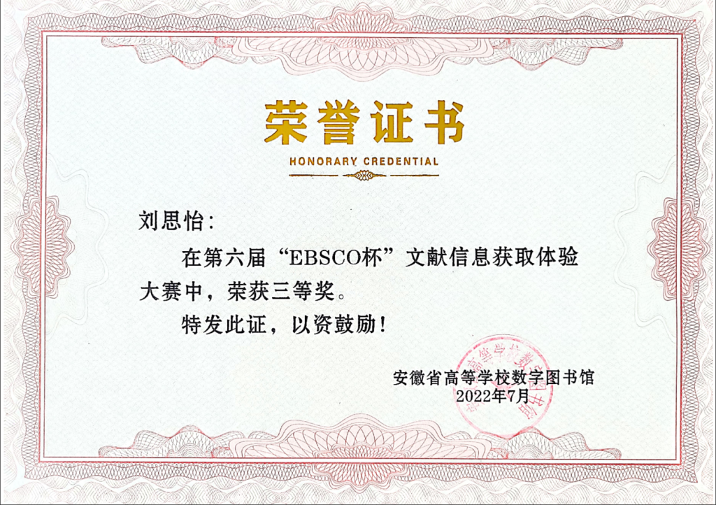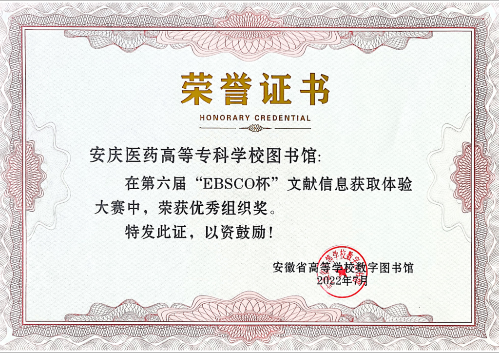 本次大赛由安徽省高等学校数字图书馆主办,合肥蓬桉数据技术服务有限公司承办,活动参与对象为本科院校在校大学生(含研究生)、职业院校在校师生。大赛于4月20日正式启动,经过省内47家高校图书馆的精心组织,本次活动共计收到答卷11000份,221位总分在86-100分的同学分别获得一二三等奖。我校护理(专科)20级14班学生刘思怡同学荣获高职组三等奖,365beat版app图书馆获“高职组优秀组织奖”。