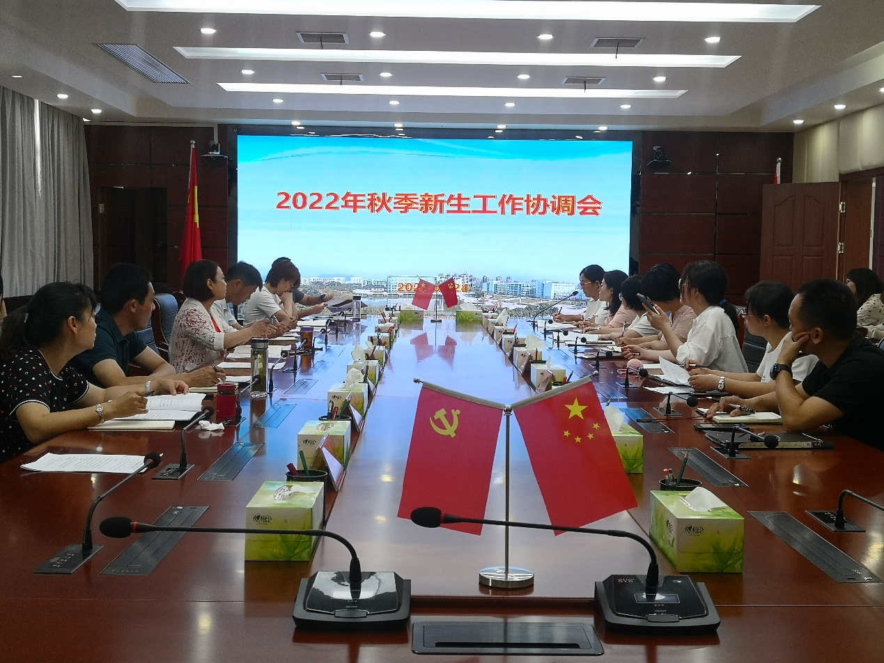 8月24日上午,我校在行政楼三楼大会议室召开2022年秋季新生工作协调会,党委委员陈琪、刘毅出席,宣传部、教务处、学生处、团委、科技处、总务处、保卫处、各学院负责人及各学院学管人员、学生处全体工作人员参加会议。
