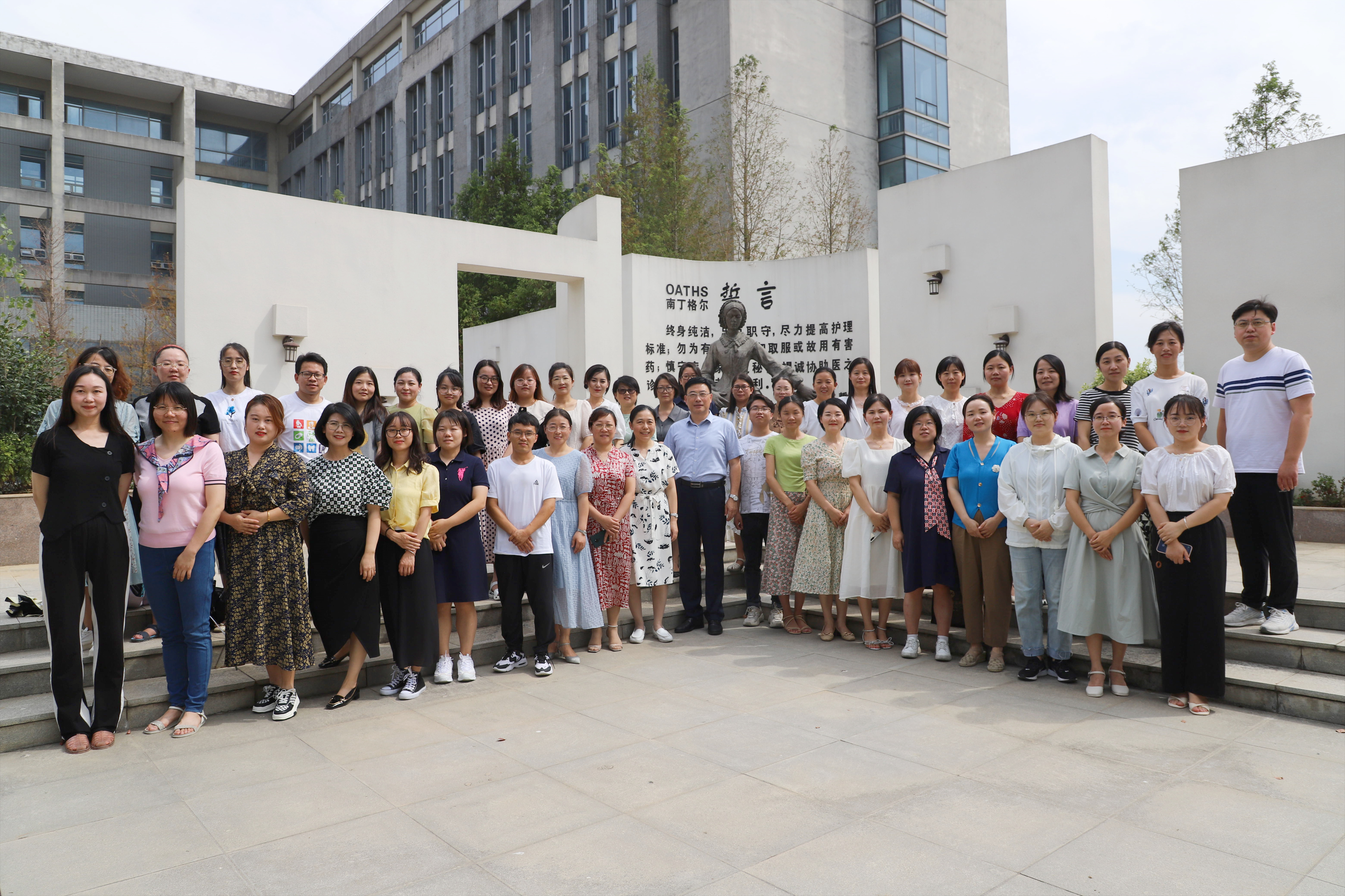 会前,护理学院全体教职工拍摄了集体照,并为全体教职工送上节日蛋糕;学院还组织各班级通过召开主题班会等活动感念师恩,向老师们送上节日的祝福。