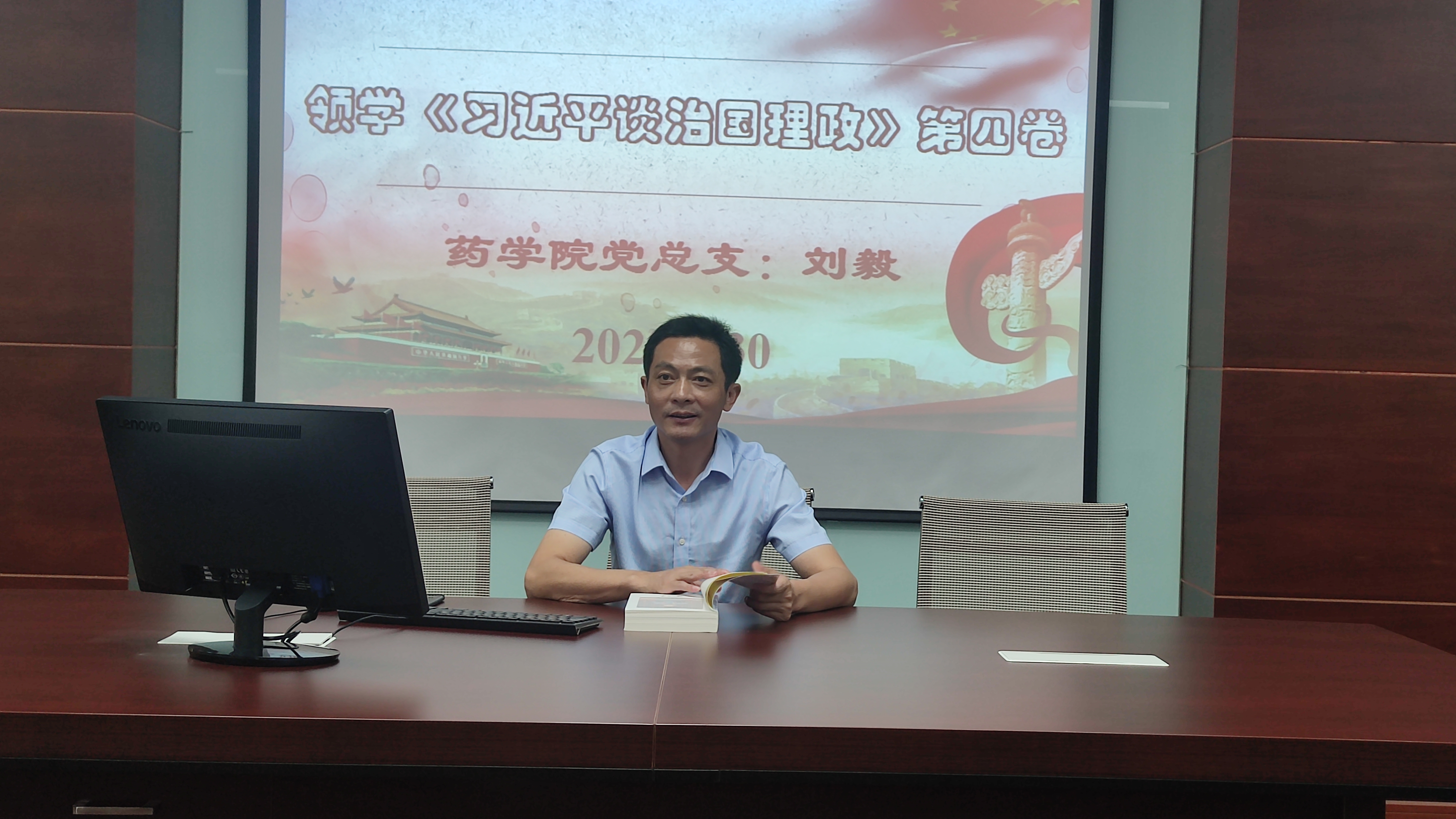 9月30日,校党委委员、药学院党总支书记刘毅在药学院实训楼一楼会议室作题为“领学《习近平谈治国理政》第四卷”的专题党课,药学院党总支全体师生党员参与活动。