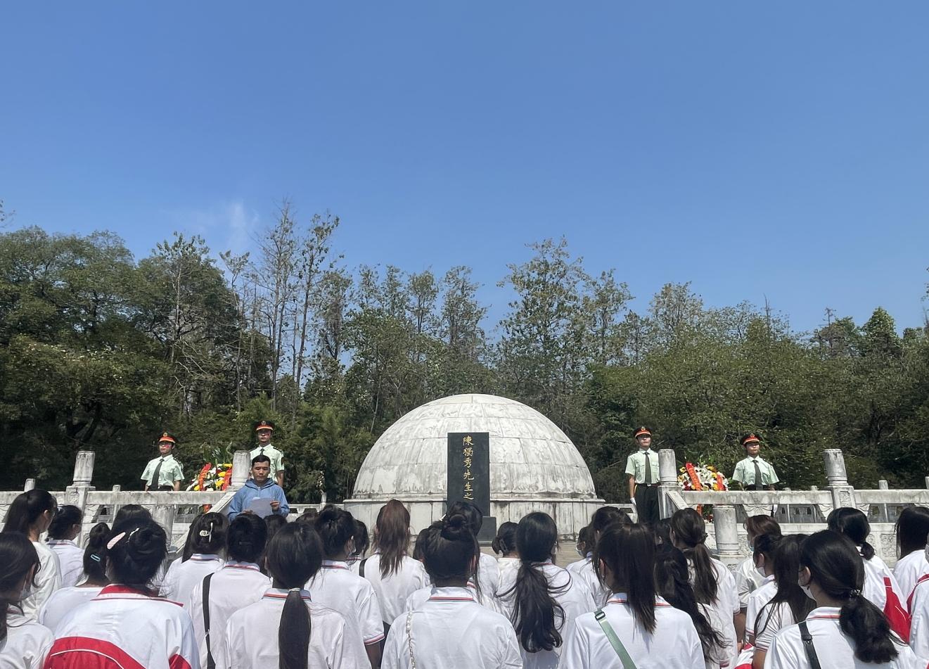 正值今年9月30日我国第九个烈士纪念日,全体师生前往陈独秀纪念园,举行以“踏寻先辈足迹·赓续红色基因”为主题的缅怀活动。师生们满怀敬仰之情,先后聆听了陈独秀先生的生平事迹,参观巍然耸立于绿水青山间的“惊雷”浮雕、独秀牌坊、《新青年》雕像、纪念水池与陈独秀墓冢,并向陈独秀烈士墓前献上花圈,驻足、深思、鞠躬、追思为民族独立、人民解放、国家富强和人民幸福英勇献身的陈独秀先生。