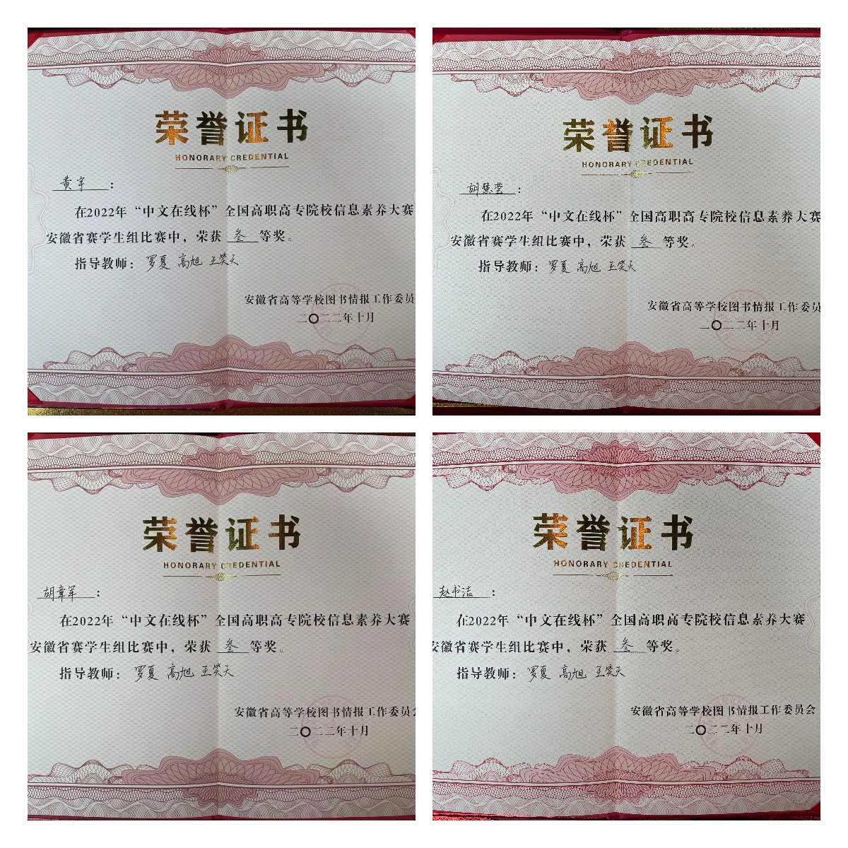 我校图书馆及选手在2022年“中文在线杯”全国高职高专信息素养大赛安徽省省赛中获得佳绩