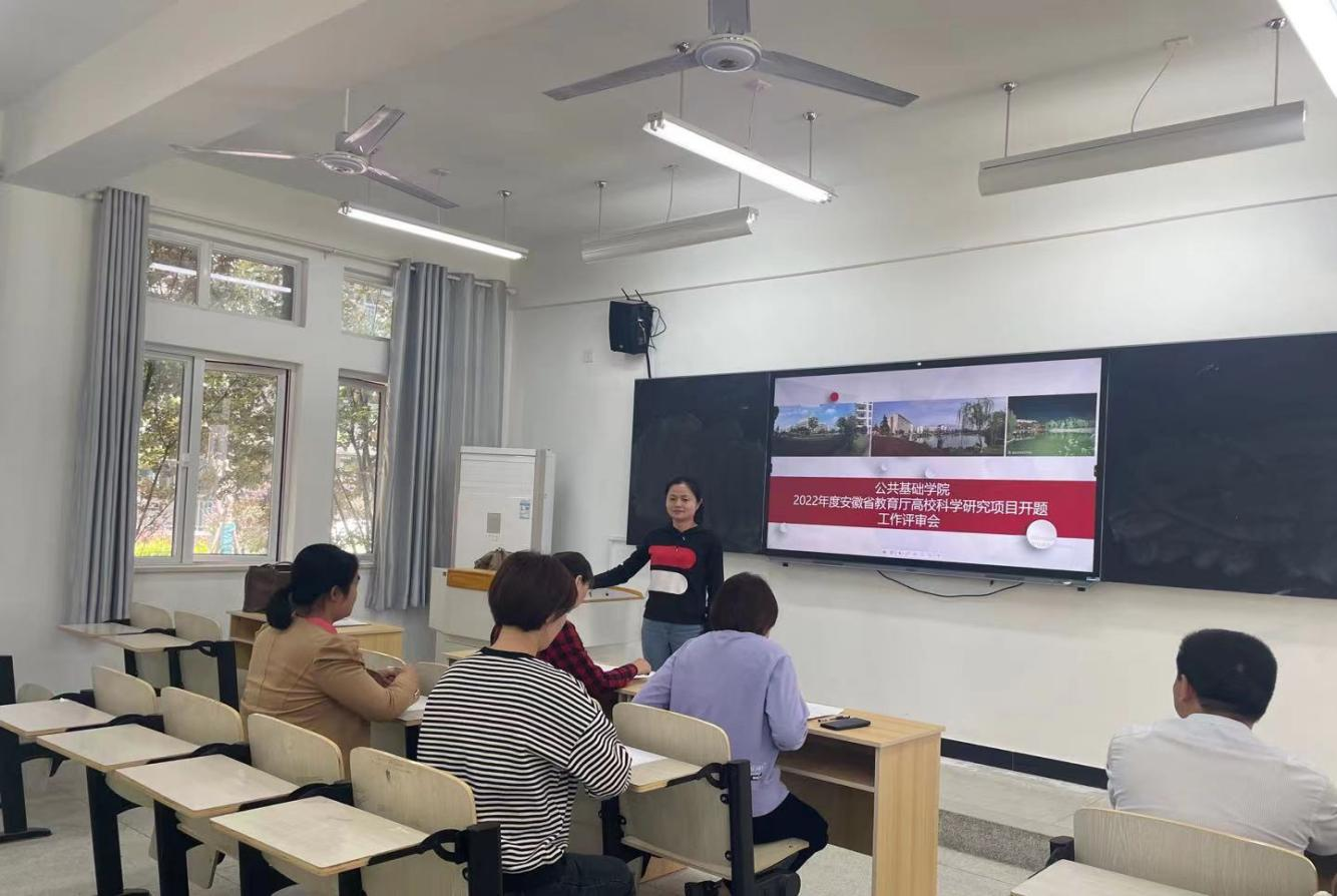 2023年5月23日中午,公共基础学院2022年度安徽省教育厅高校科学研究项目开题评审会在3栋教学楼3103召开。评审会专家由图书馆负责人高旭教授、马克思主义学院副院长胡颖群副教授、公共基础学院副院长江慧副教授、马克思主义学院刘乔副教授及医学院吴娟副教授组成。