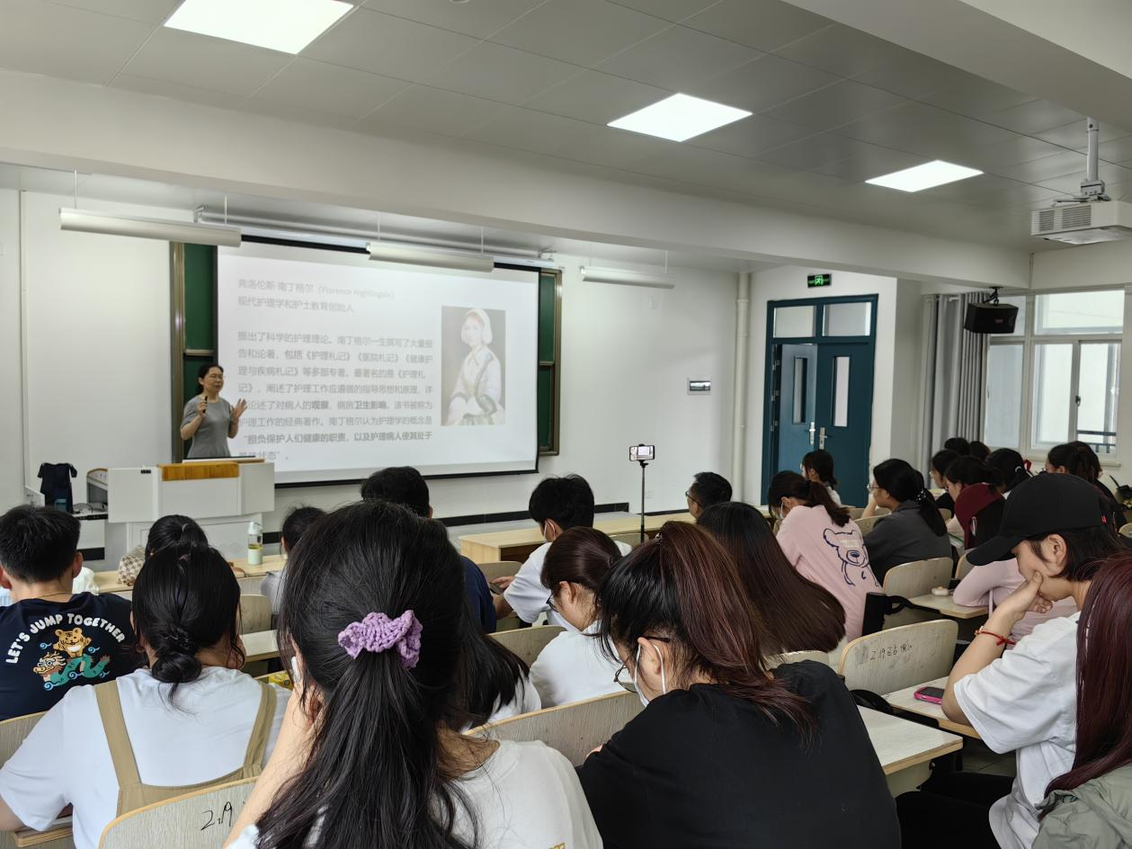 钱立晶从护理专业创始人南丁格尔的贡献和成就说起,详细介绍了当今国际护理专业发展现状和护理专业发展前景,勉励学生努力学习,不断进取,成为高、精、深、专的现代护理人才,以适应未来护理专业发展的需要。整场讲座站位高远、内涵丰富,对护理专业学子的专业发展具有很强的指导意义。