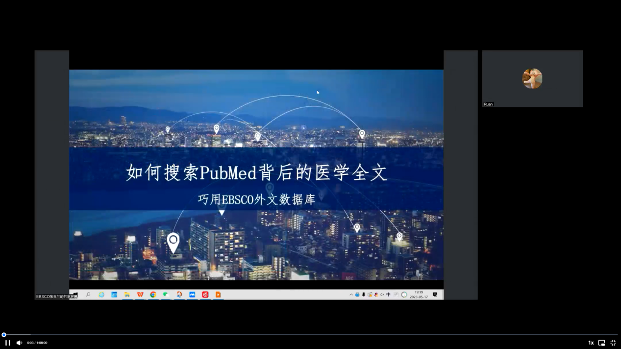 5月14日-5月20日是2023年职业教育活动周,校图书馆联系主流资源库供货商向全校师生推出了三场线上数据库培训讲座:“如何搜索PubMed背后的医学全文--巧用EBSCO外文数据库”(5月17日晚19:30-20:30),“巧用CNKI,畅享知识发现”(5月19日晚19:30-20:30),“万方医学网医学文献检索技巧”(5月20日晚19:30-20:30)。三家数据库培训讲师详细讲解了各数据库的资源及特点、使用方法和检索技巧等方面的知识,并在讲座末尾解答了师生们在文献检索时所遇到的问题。职业教育活动周专题讲座干货满满、实用性强,对广大师生提升文献检索水平有很大帮助。