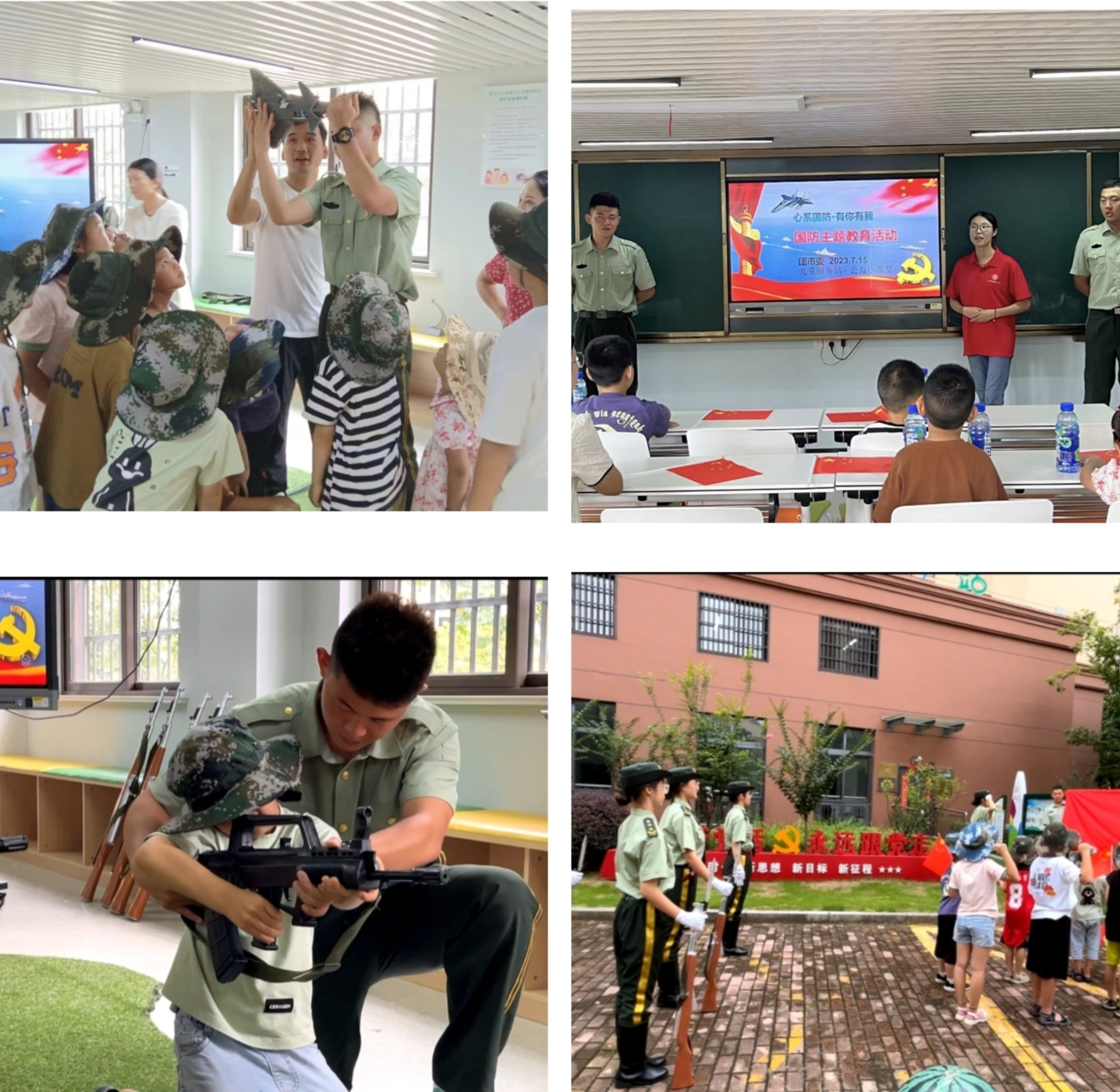 实践队下午来到莲花社区儿童服务站,用通俗易懂的语言给留守儿童进行生动的国防教育宣讲。课堂上小朋友们积极主动回答问题,表现出对国防知识的热爱和兴趣。课后的趣味活动中,实践队中的两位退伍军人进行站军姿以及齐步走的现场示教,接着他们还分别介绍了战斗机歼20的模型和95式模型的用途、构造,虽然只是模型枪,但手握步枪的小朋友们一个个都自豪神气。实践队希望通过精心准备的国防教育系列课程,在孩子们心中种下关心国防、热爱国防、建设国防、保卫国防的种子。