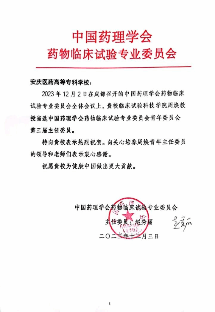 此次周焕教授当选青年主任委员,临床试验科技学院将以此为契机,积极开展工作,为临床试验学科发展、人才培养、药物研发添砖加瓦,培养更多高素质技术技能人才。(撰文:刘婷婷;供图:朱金燕;审改:刘毅)