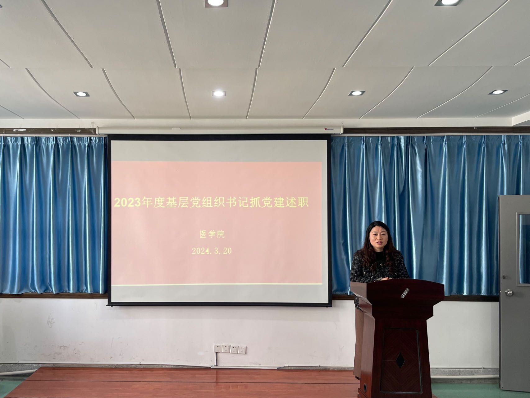 2024年3月20日,医学院党总支在外科手术观摩室召开2023年度基层党组织书记抓党建述职评议会。会议由医学院党总支书记刘燕主持,医学院全体党员参加。
