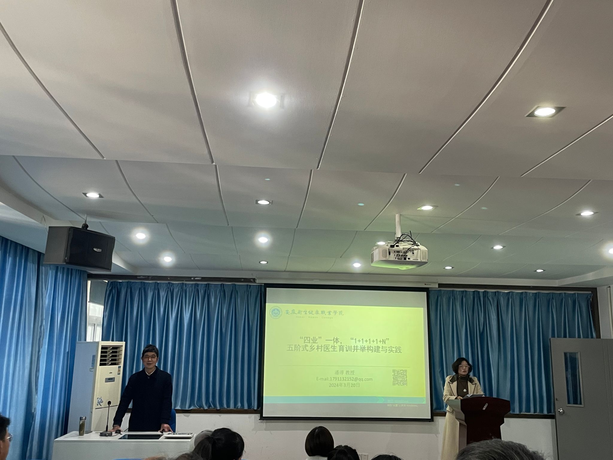 为进一步了解省内外临床医学专业乡村医生培养现状,加强教师对专业发展的认识,提高医学生服务基层医疗的意识,2024年3月20日,医学院邀请安徽卫生健康职业学院学术委员会主任、医学系主任、安徽省卓越教学名师潘淳教授来校开展专题讲座。医学院全体教师和“农村订单定向医学生”班级学生参加。