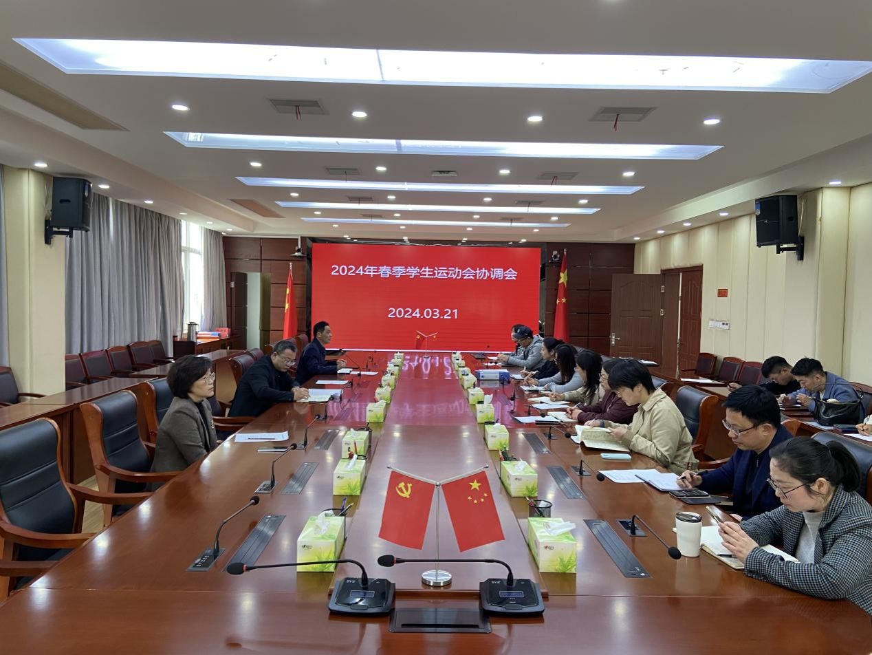 3月21日中午,我校在行政楼三楼大会议室召开365beat版app2024年春季学生运动会协调会,校党委委员朱三九、朱雯,刘毅出席会议,各学院、相关职能部门负责人参加会议。会议由刘毅主持。