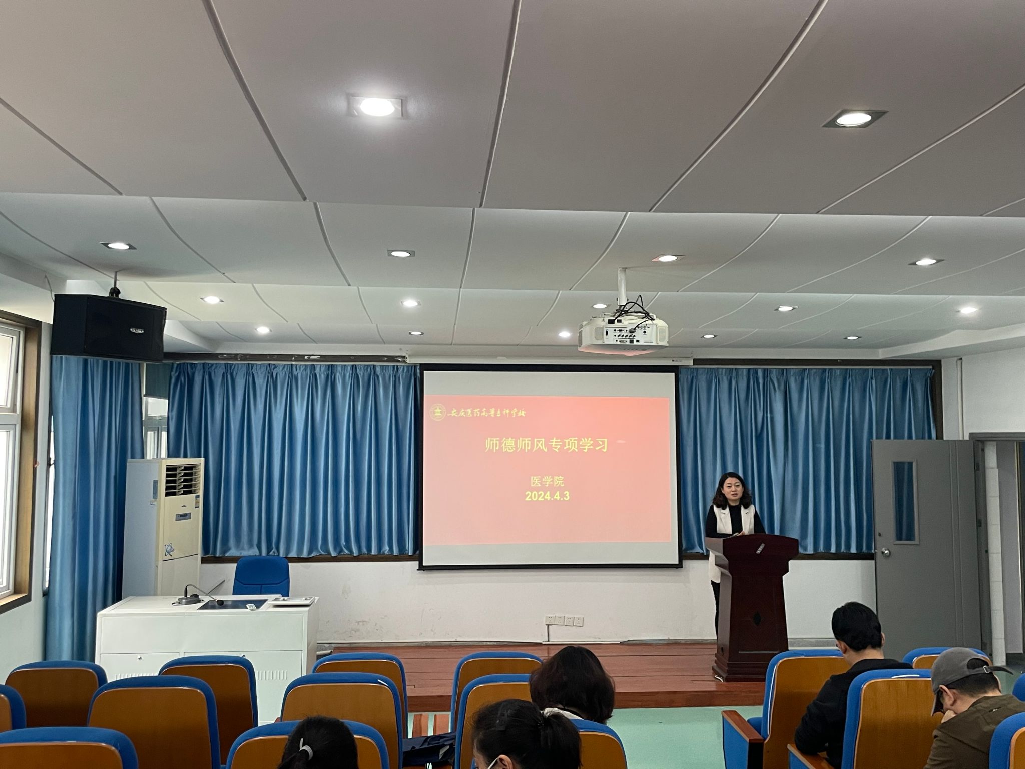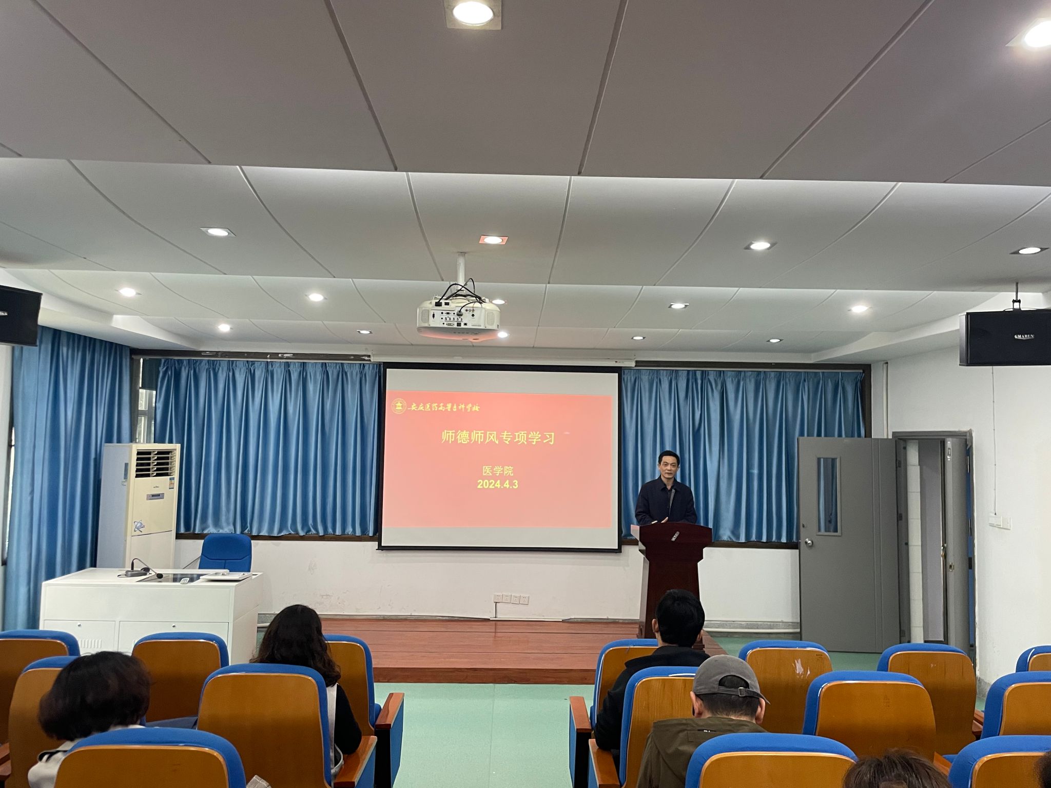 为进一步加强师德师风建设,医学院于4月3日下午在外科手术观摩室召开师德师风专题学习会议。医学院党总支书记、院长刘燕主持,校党员委员刘毅参会指导,学院全体教职工参会。