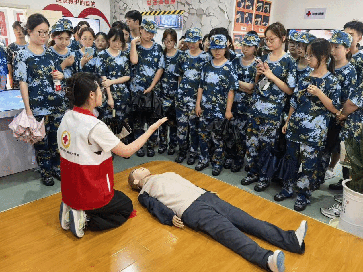 我校医学院、护理学院、药学院和临床试验科技学院的2025级新生,在学校的统筹组织下,在入学后分批前往红十字应急救护培训基地开展参观学习。在基地内,新生们通过“近距离观察+场景化学习”的方式,深入了解心肺复苏模拟人、AED除颤仪、外伤止血包扎套件等急救设备的使用场景;观看基地讲师模拟“患者突发心脏骤停”“意外外伤出血”等紧急场景的处置流程,直观感受“黄金4分钟”急救的重要性。护理学院25级护理1班刘玉杰同学表示:“看到讲师在模拟场景中快速完成判断病情、心肺复苏、AED除颤的全流程,我真切体会到‘时间就是生命’,也更加明白急救技能对护理专业学生的意义,今后会更用心学好专业知识。”