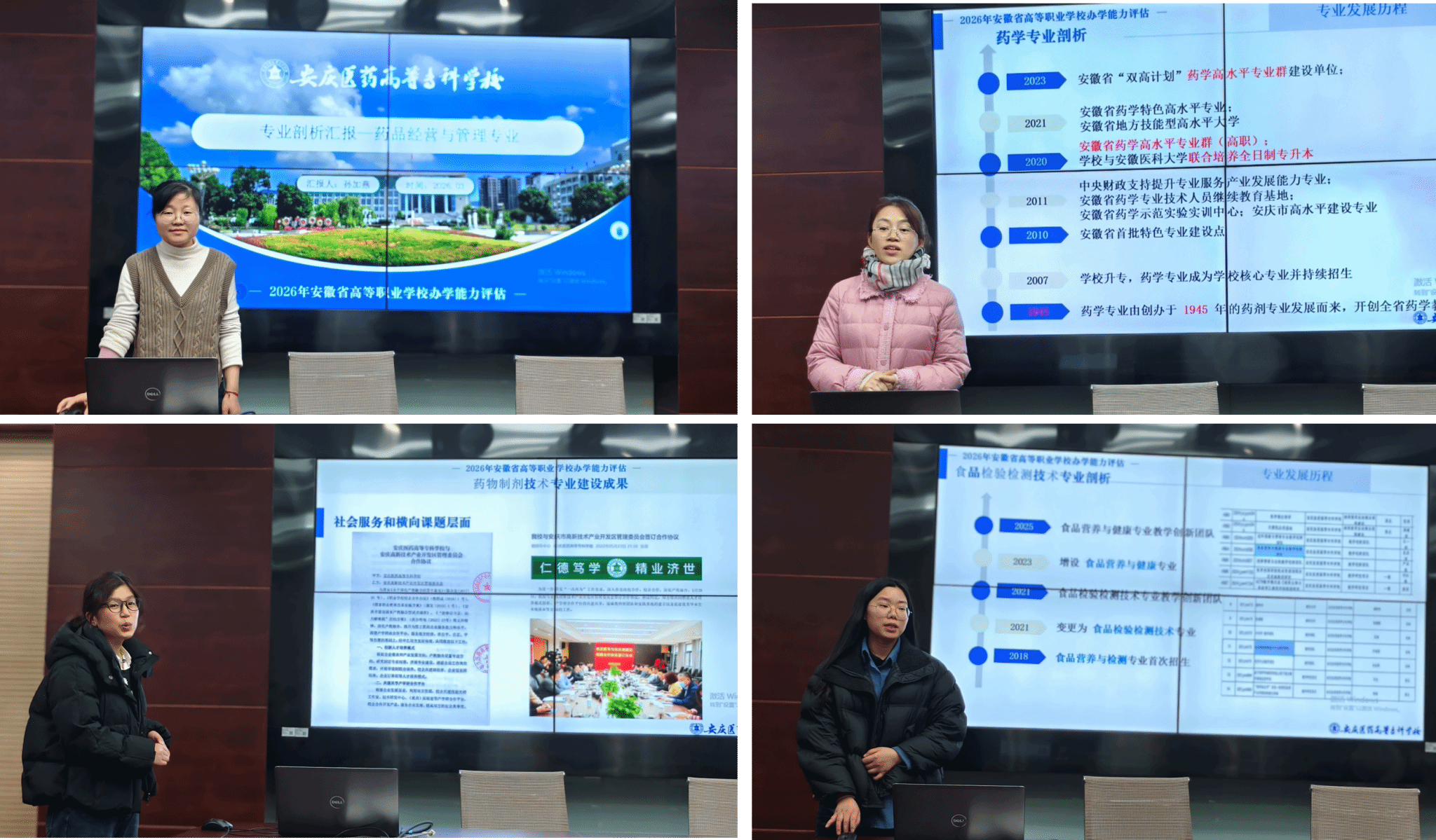 活动开始,药学院各专业负责人分别开展了药学、中药学、生物制药技术等专业的专业剖析汇报。各专业负责人立足专业设置背景与人才培养目标、教学条件、课程体系和课程改革、教材管理使用与开发、师资队伍、实验实训等方面,细致梳理专业建设现状,客观查摆当前办学过程中存在的短板与不足,结合医药行业发展新趋势、岗位需求新变化,针对性提出后续优化改进思路与中长期发展规划。