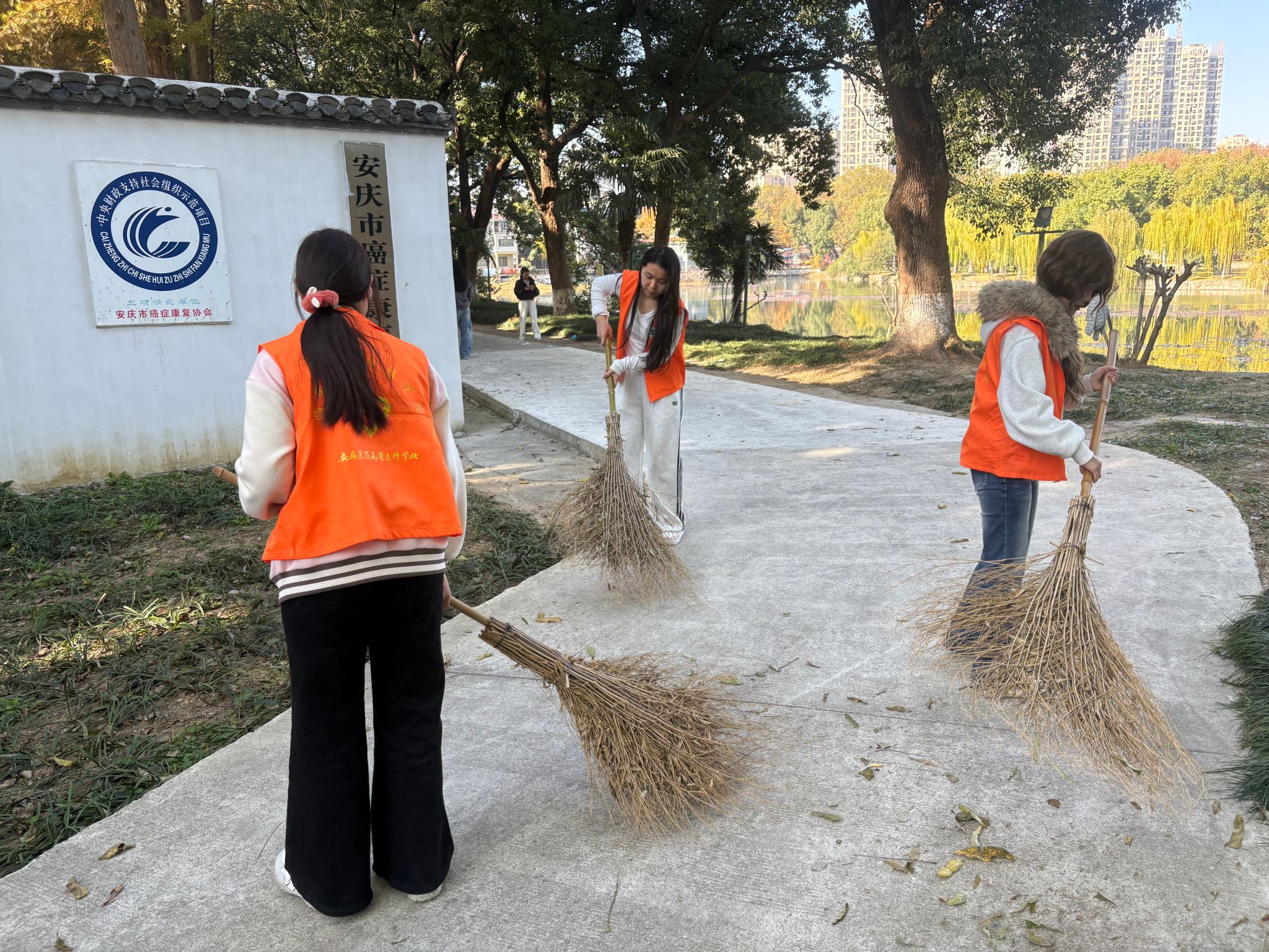 学院组织志愿者在校内操场与校外菱湖公园同步开展环境卫生清理行动。同学们分组协作,全面清理各类垃圾,并对不文明行为进行文明劝导。通过亲身实践,学生不仅改善了周边环境,更在实践中强化了生态文明意识与团队协作能力,生动践行了志愿服务精神。