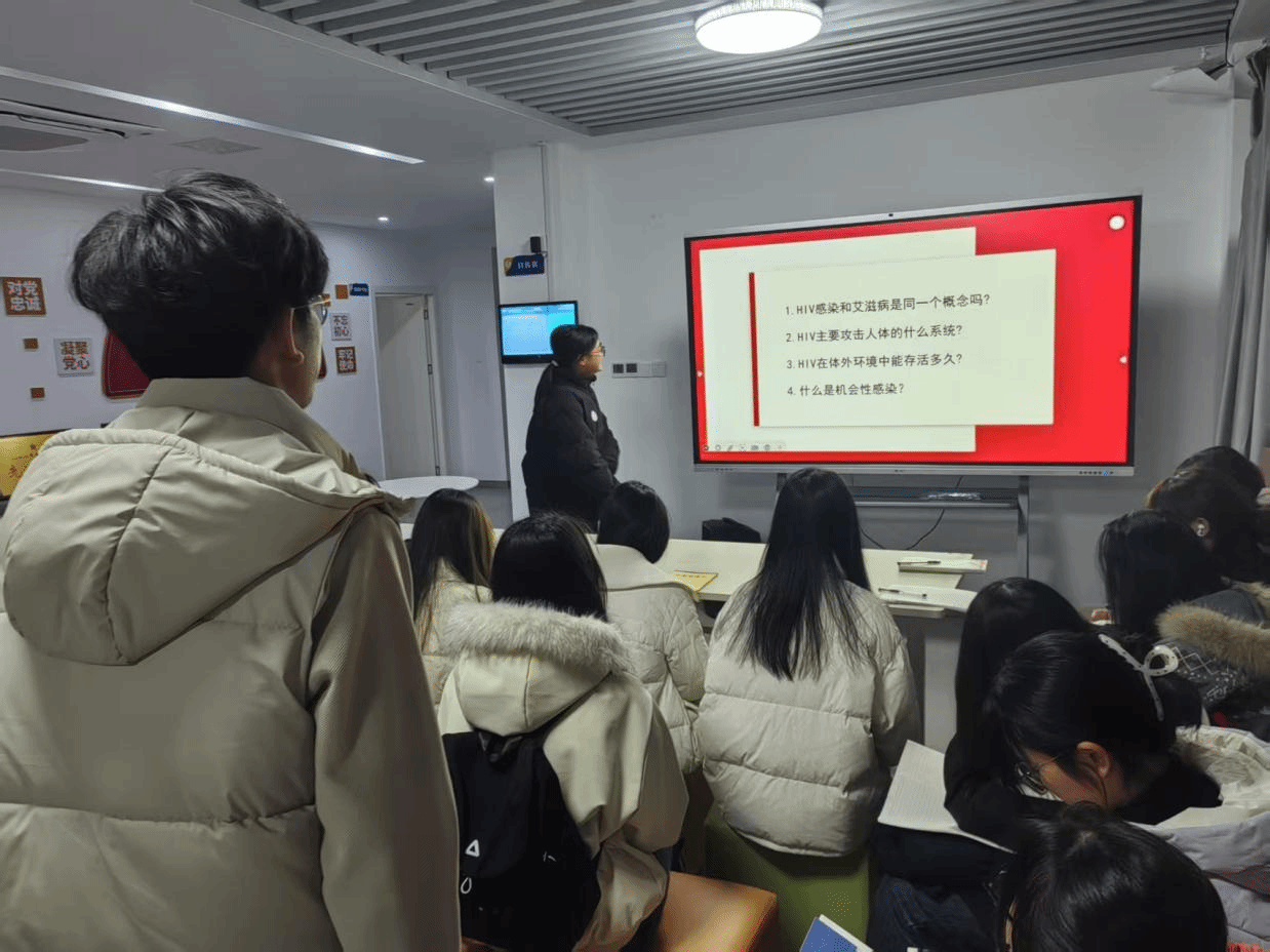 依托一站式学生社区,学院开展了艾滋病防治专题科普宣讲。同学们精心准备宣讲内容,系统讲解艾滋病传播途径、预防措施及相关科学知识,积极倡导科学防艾、消除歧视、关怀患者的理念。活动不仅提升了学生的专业科普能力与健康素养,也展现了志愿服务在健康教育中的重要作用。