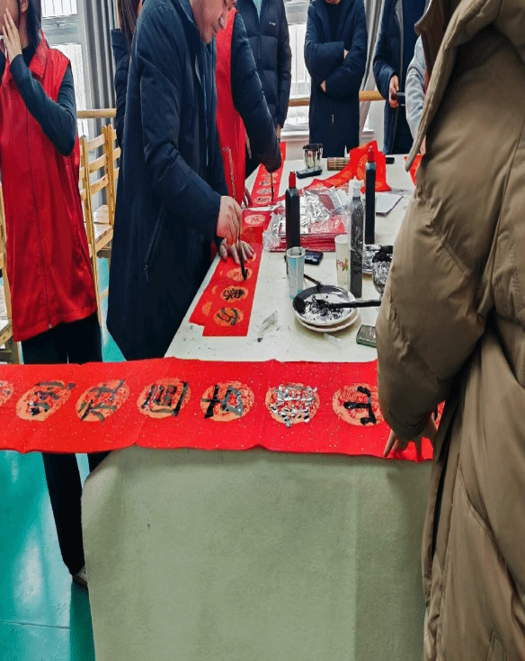 同时我也参与了2月7日开展的“共筑中国梦同绘华夏春”写春联活动,为广大群众送春联、送文化、送祝福、送温暖。活动现场,书法老师们挥毫泼墨,抻纸、蘸墨、落笔,多种书体各显神韵,我们在一旁帮书法老师压纸晾字,场面暖意浓浓,翰墨飘香,充满了浓厚的年味。前来参与活动的群众们手拿墨迹未干的春联,喜上眉梢:“有春联才有年的味道,书法老师们为我们写的新年春联,很暖心,很贴心”。通过此次活动的开展,不仅让萧县人民感受到中华传统的魅力,弘扬了中华民族的优秀文化,同时也让群众们提前感受到了过年的氛围,为群众传递新春的祝福。