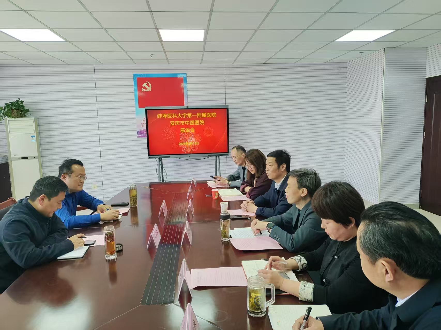 深入交流,共话合作发展蓝图。15 日召开的座谈会上,安庆市中医医院院长杨晓春向蚌医一附院领导详细介绍了医院的发展历程、办院特色和业务规模等情况,表达了在蚌医一附院协助下,拓展临床药物试验等新兴领域的决心。