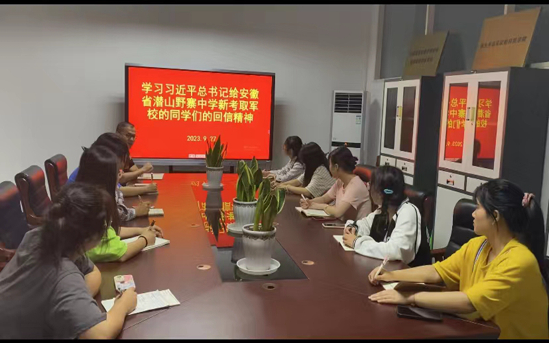 全体入党积极分子一起观看了习近平总书记回信勉励安徽省潜山野寨中学新考取军校的同学们的新闻报道和在安庆引起强烈反响的视频。全体入党积极分子热议习近平总书记给安徽省潜山野寨中学新考取军校的同学们的回信精神,并分别谈了自己的学习心得,表示要坚决落实总书记的回信精神,志存高远,刻苦学习,立志做有理想、敢担当、能吃苦、肯奋斗的新时代好青年。(撰文:刘双虎;供图:黄靖;审核:任丽英)