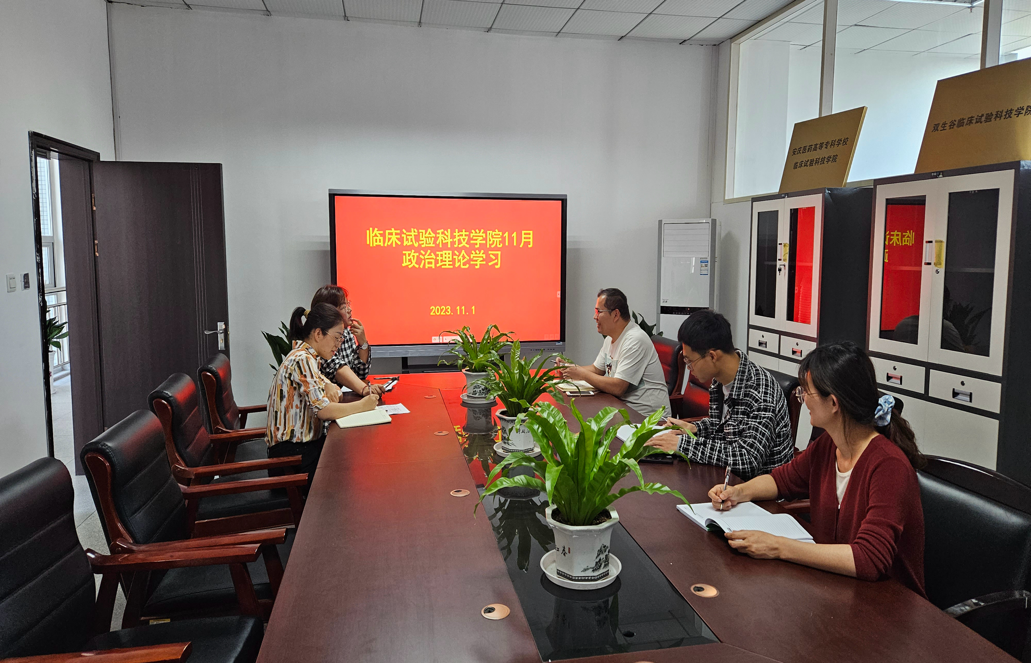 11月1日中午,临床试验科技学院全体党员在学院会议室开展11月政治理论学习会,会议由直属支部副书记任丽英主持。