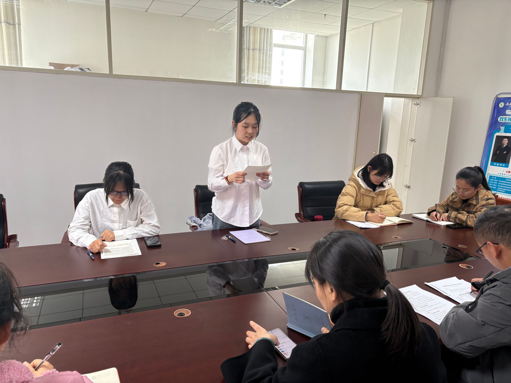 曹承娇副部长代表党委祝贺杨斯荃、时曼婷两名同志被党组织接收为中共预备党员。她希望两位同志以正式党员的标准严格要求自己,持续深化理论学习,积极投身实践活动,充分发挥党员的先锋模范作用,为学院发展贡献智慧和力量。同时,她也对学院党支部的工作给予肯定,并鼓励全体党员在今后的工作中继续发挥党组织的战斗堡垒作用,推动学院各项事业发展。