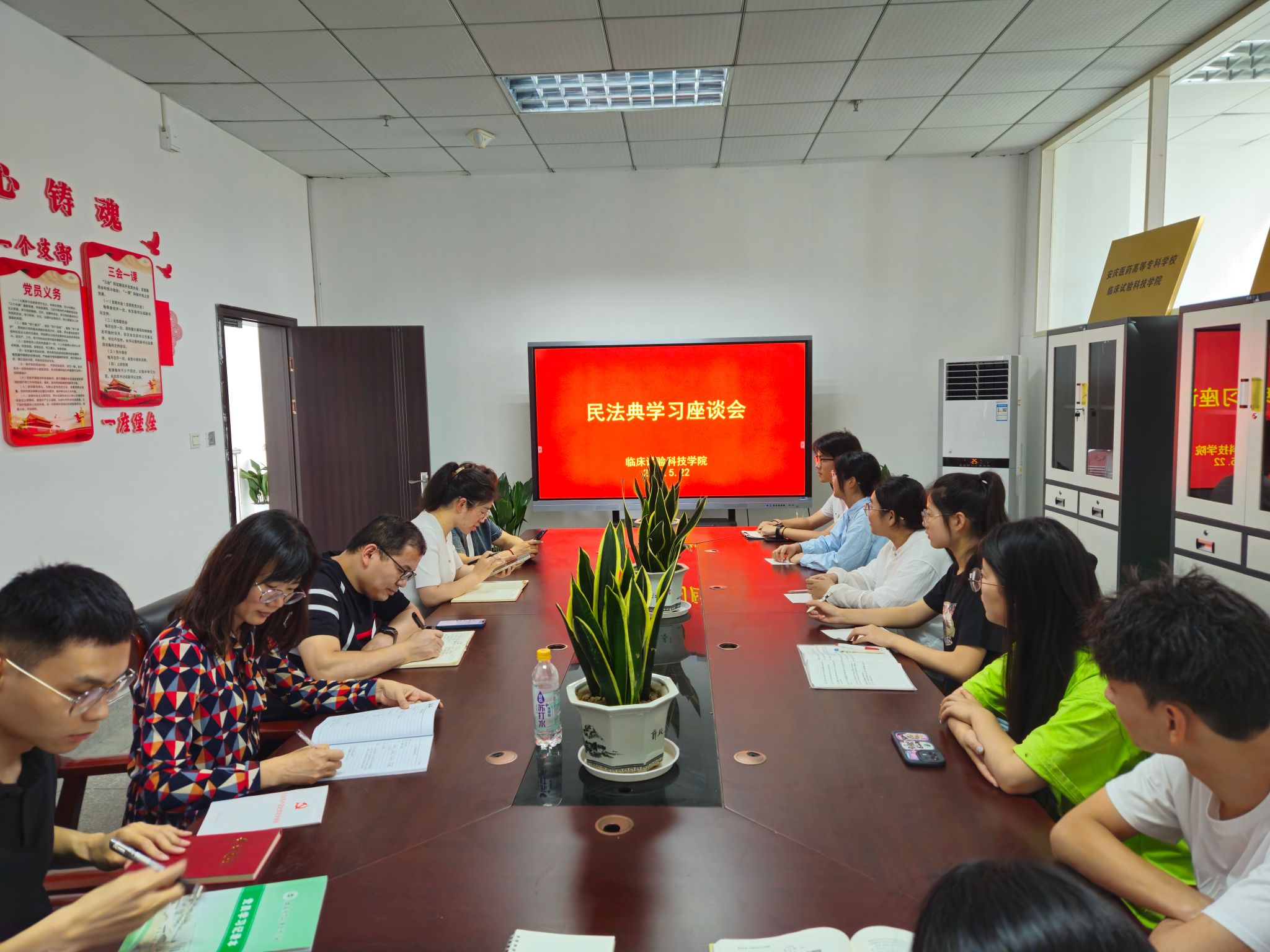 为深入学习贯彻习近平法治思想,切实加强民法典的学习宣传教育。5月22日,临床试验科技学院召开民法典学习座谈会,全体党员教师和优秀学生代表参加座谈会。会议由副院长朱金燕主持。