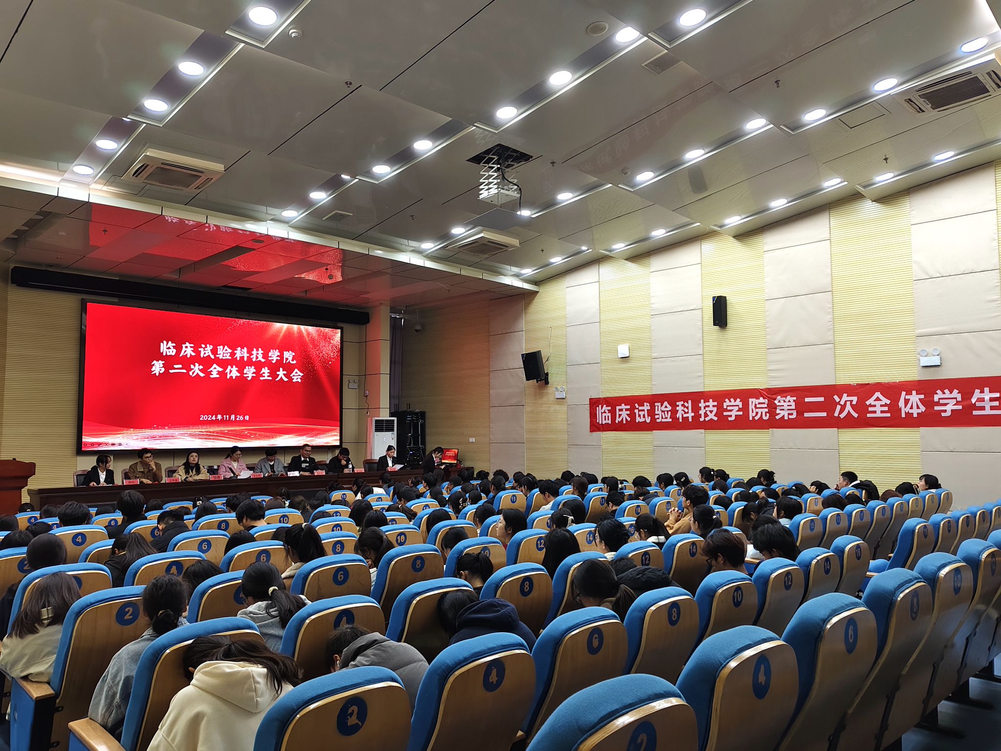 青春扬帆启新程,奋楫笃行再出发。2024年11月26日,临床试验科技学院在图书馆学术报告厅召开第二次全体学生大会。学院副书记任丽英、副院长朱金燕、全体教师,校学生会指导老师及学院139名学生参加了此次大会。大会由2023级学生仰玉洁主持。