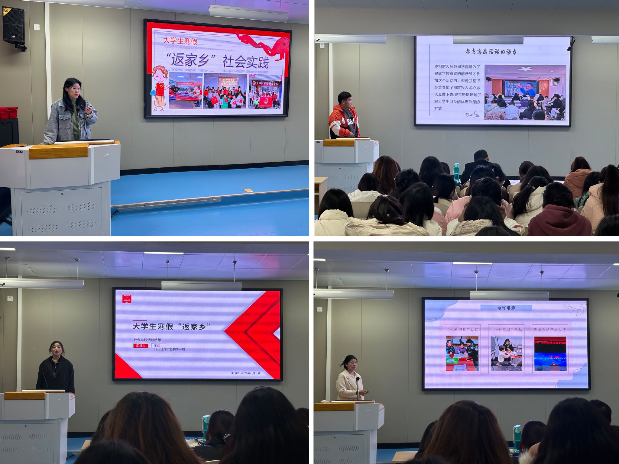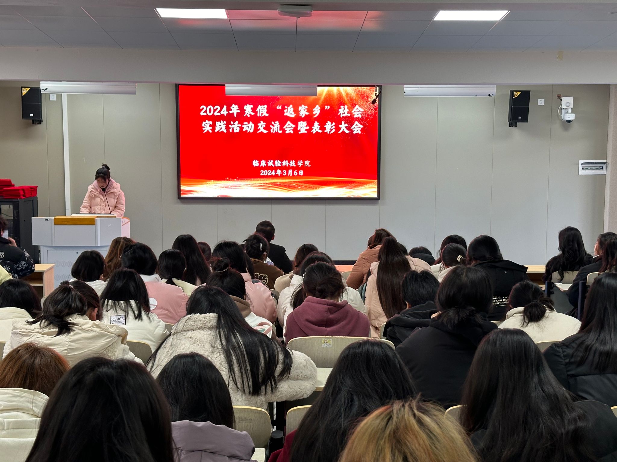 春来潮涌东风劲,扬帆奋进正当时。为选树先进典型,激发奋斗动力,2024年3月6日下午,临床试验科技学院在第八阶梯教室举办2024年寒假“返家乡”社会实践活动交流会暨表彰大会,临床试验科技学院团总支书记刘双虎出席活动,临床试验科技学院22级、23级学生参加大会。