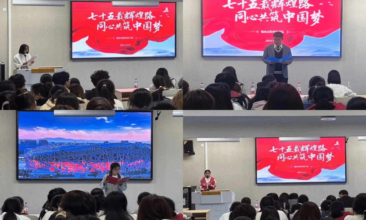 声动青春,韵颂中华。恰逢新中国七十五周年华诞,为全面贯彻落实习近平新时代中国特色社会主义思想,培养同学们的爱国情怀,丰富校园文化生活,临床试验科技学院于2024年10月14日在阶梯七教室举办“七十五载辉煌路,同心共筑中国梦”主题演讲比赛,学院23级和24级共计9名同学入围现场决赛,临床试验科技学院任丽英老师、刘双虎老师、监察审计处查娇娇老师应邀担任评委,学院23级和24级部分同学参与活动。