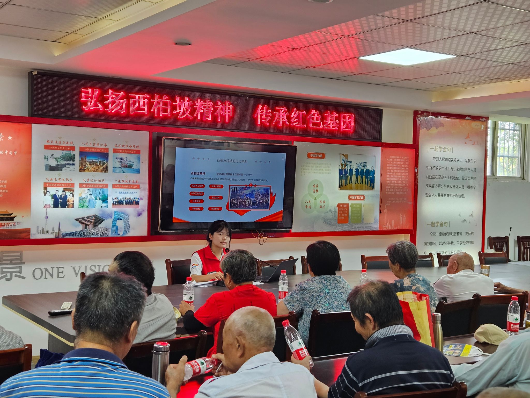 弘扬西柏坡精神,传承红色基因。微光志愿服务队是2024年全国大学生西柏坡精神志愿宣讲团,依托暑期三下乡的平台,致力于推动西柏坡精神在全社会的广泛传播和深入实践。7月8日上午,微光志愿服务队的同学们就早早来到吴嘴社区,大家统一着装,有序分工,提前布置宣讲场地,做好宣讲的充分准备。社区居民全部到场后,西柏坡精神宣讲正式开始。宣讲员围绕“谦虚谨慎、艰苦奋斗、实事求是、一心为民”为核心内容的西柏坡精神,从西柏坡精神的历史背景、内涵以及西柏坡精神代表人物娓娓道来,宣讲员的讲解声情并茂,动人心弦,赢得了社区居民的点赞和喝彩。