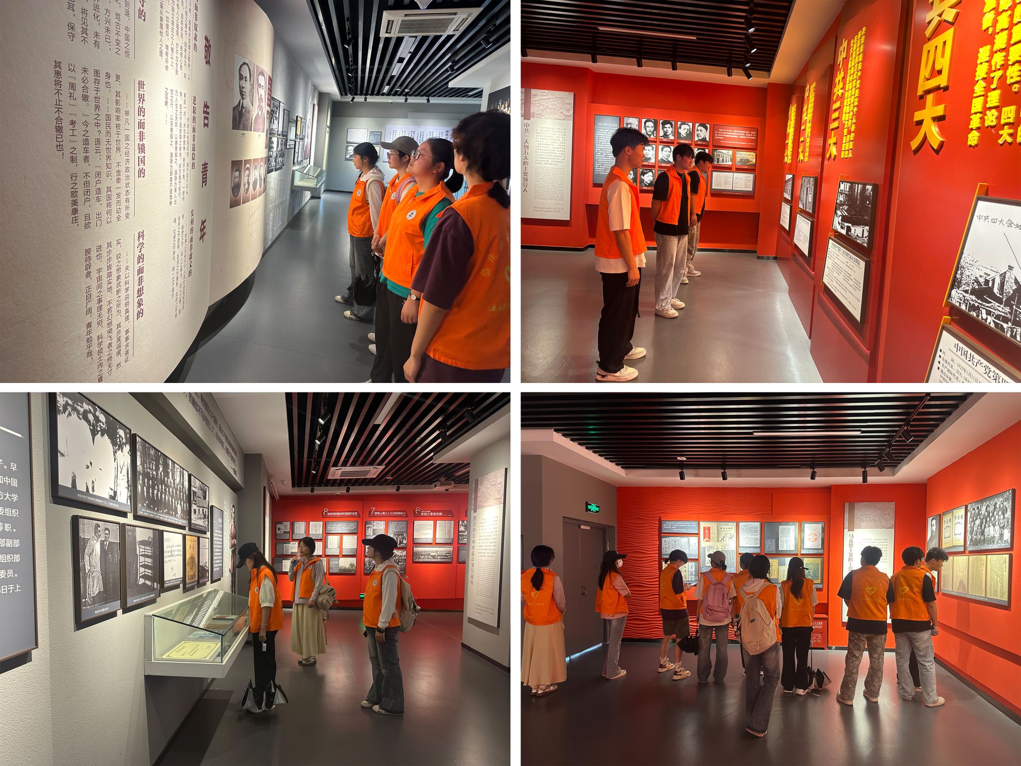 活动当天,同学们怀着崇敬的心情,缓步走过园区内的各个展区。在纪念馆中,泛黄的手稿、珍贵的历史图片、复原的革命场景,生动再现了党的早期创始人在新文化运动和“五四运动”中的卓越贡献。展厅中,同学们驻足凝视,认真聆听讲解,了解革命先辈在思想启蒙、文化革新和革命斗争中的重要事迹,深刻感受其坚定的理想信念和伟大的爱国情怀。
